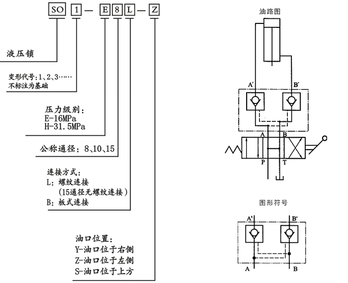 用途與特征: S0型液壓鎖(雙向液壓鎖)用于工程機械液壓系統(tǒng)中,直接裝在液壓缸上,可長時間保持液壓缸活塞桿的位置不變。該液壓鎖主要用于起重機械,礦山機械或其它機械的液壓系統(tǒng)中。 型號說明: