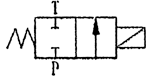 當(dāng)車廂舉升到最大轉(zhuǎn)角位置時,限位機(jī)構(gòu)觸點(diǎn)將電器行程開關(guān)的觸點(diǎn)壓下,電磁鐵N得電,換向閥P口與T口接通,使舉升缸供油口與T口瞬間連通,舉升缸即下降一段距離(車廂舉升轉(zhuǎn)角變小),隨車廂舉升轉(zhuǎn)角變小限位機(jī)構(gòu)觸點(diǎn)離開電器行程開關(guān)的觸點(diǎn)使電磁鐵N失電,電磁換向閥恢復(fù)原始狀態(tài)同時系統(tǒng)壓力油再次進(jìn)入舉升缸使其上升(車廂再次舉升到最大轉(zhuǎn)角位置)。電磁鐵N在電器行程開關(guān)得電—失電—得電范圍內(nèi)(即P口的開啟—閉合—開啟)實現(xiàn)車廂下降—舉升—下降往復(fù)變化過程,使車廂產(chǎn)生輕微抖動有利于將車廂內(nèi)的殘留物體卸掉。該閥的工作原理示意圖如下。