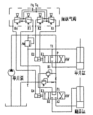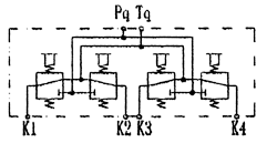 4(2)KQF型操縱氣閥的原始位置Pq口與T口是封閉的,各控制口K與TQ口相通。搬動(dòng)手柄可在四個(gè)或二個(gè)不同角度。該閥的工作原理示意圖如下